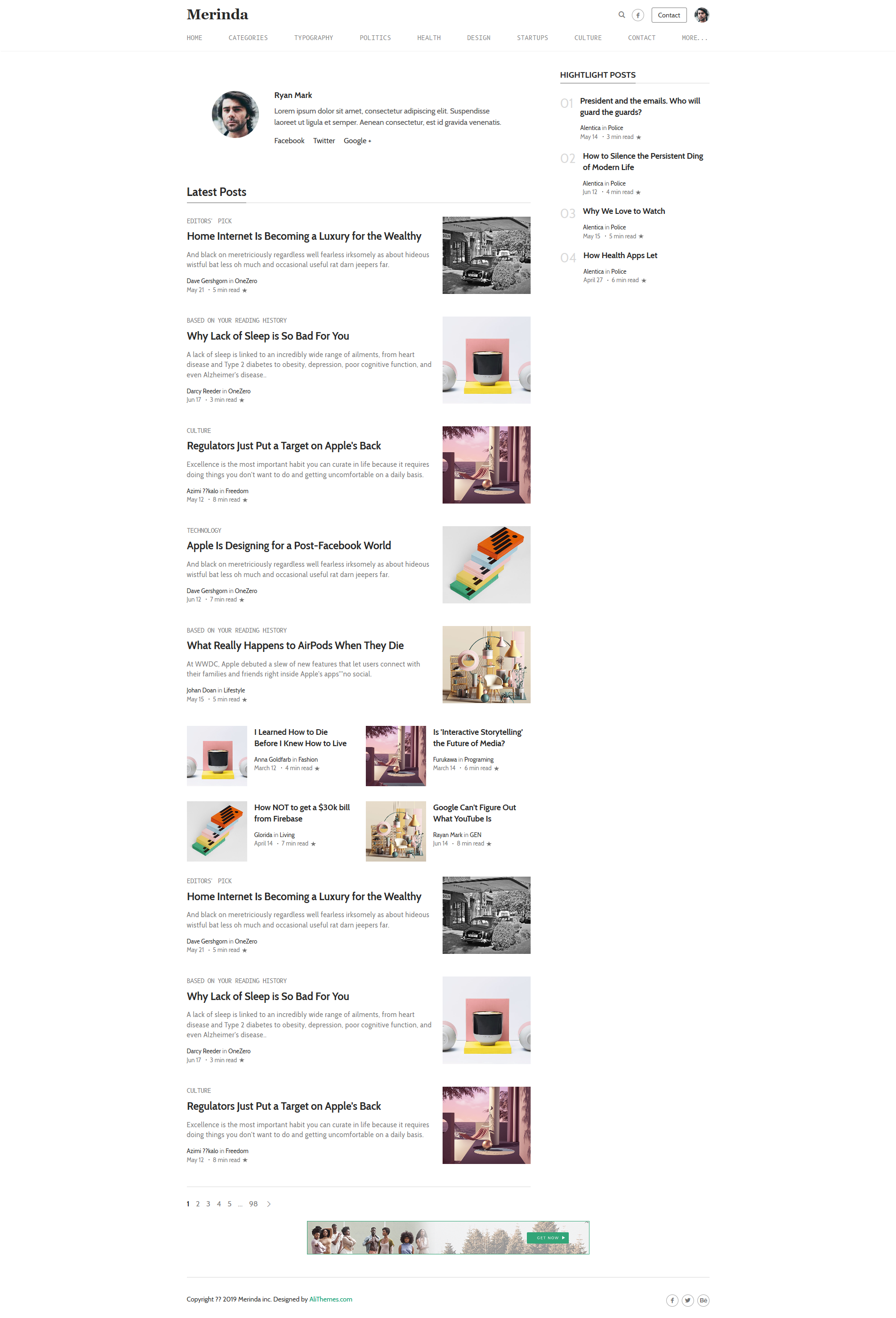 Merinda is a sleek and modern HTML template crafted especially for blogs, magazines, and content-focused websites. Inspired by Medium’s clean aesthetics, Merinda brings your stories to life with elegance and clarity — now supercharged with the latest Bootstrap 5.3.5, built-in dark/light mode, and optimized lazy image loading for blazing-fast performance.